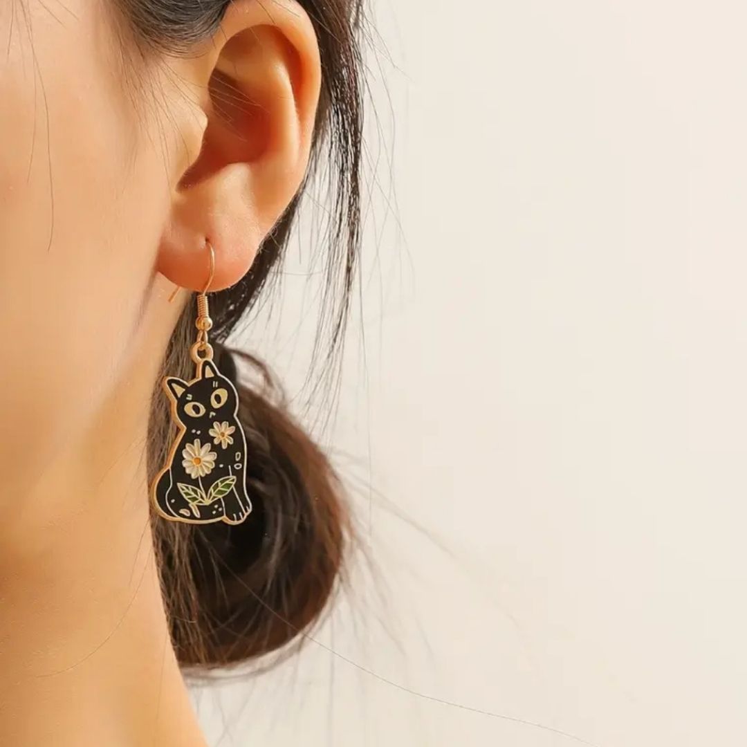 ✨ Aretes de gato fabricados en aleacion de zinc, postes de acero inoxidable con un estilo retro muy original para mujeres autenticas que amen los gatos