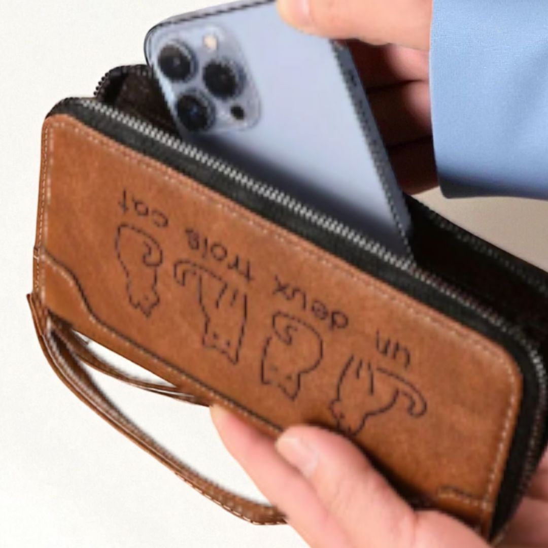 Billetera con diseño de gato material imitacion cuero con cremallera, diseño tejido con bigotes. ideal para llevar efectivo, tarjetas
