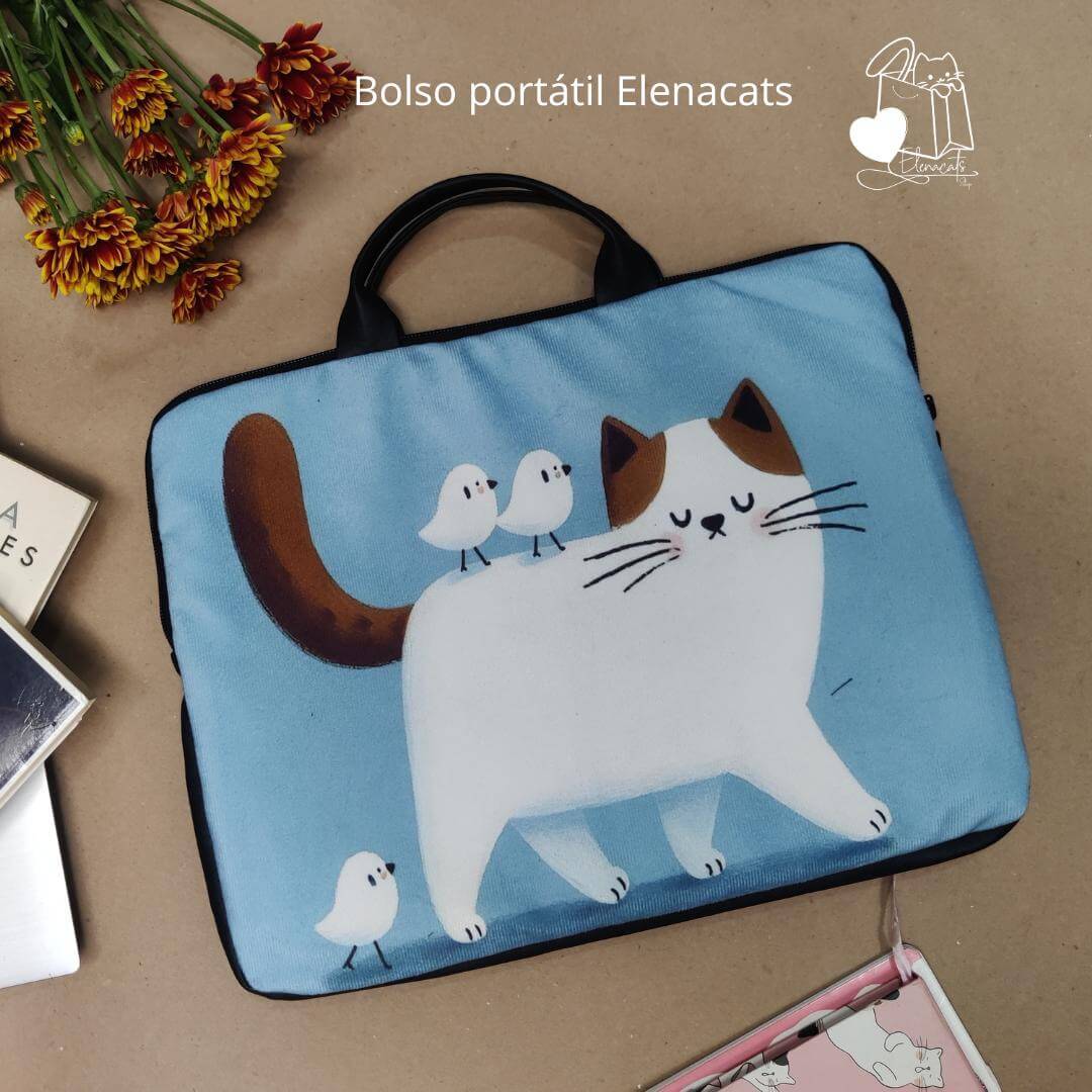BOLSO PARA PORTATIL GATO CON PARAJITOS