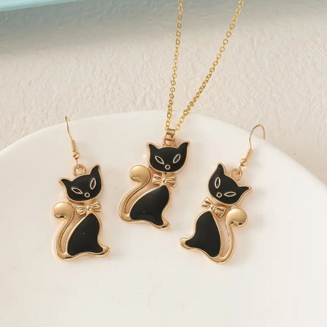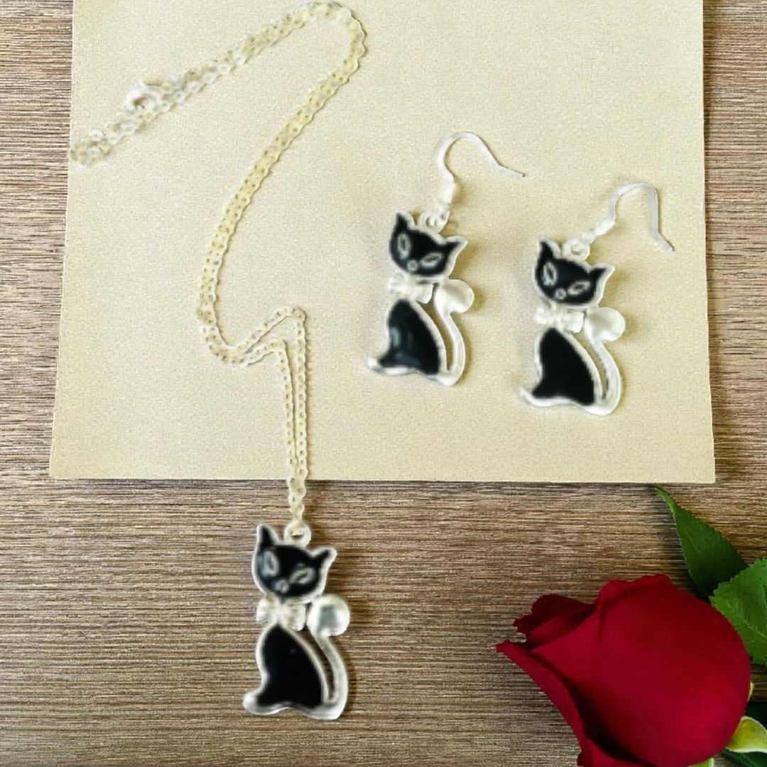 Elegante collar con gatos grandes con pendientes (aretes ) acero inoxidable cadena Ideal para complementar tus looks.