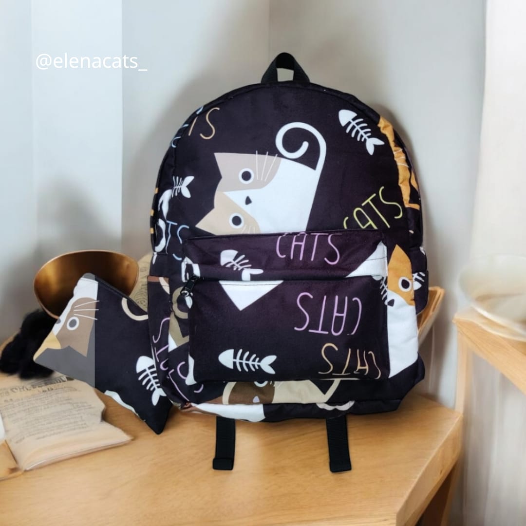 Morral de gatos fabricado en tela Marsella suave, con un bolsillo interno para pc y un compartimiento en el frente. ideal para viajes o para el uso diario