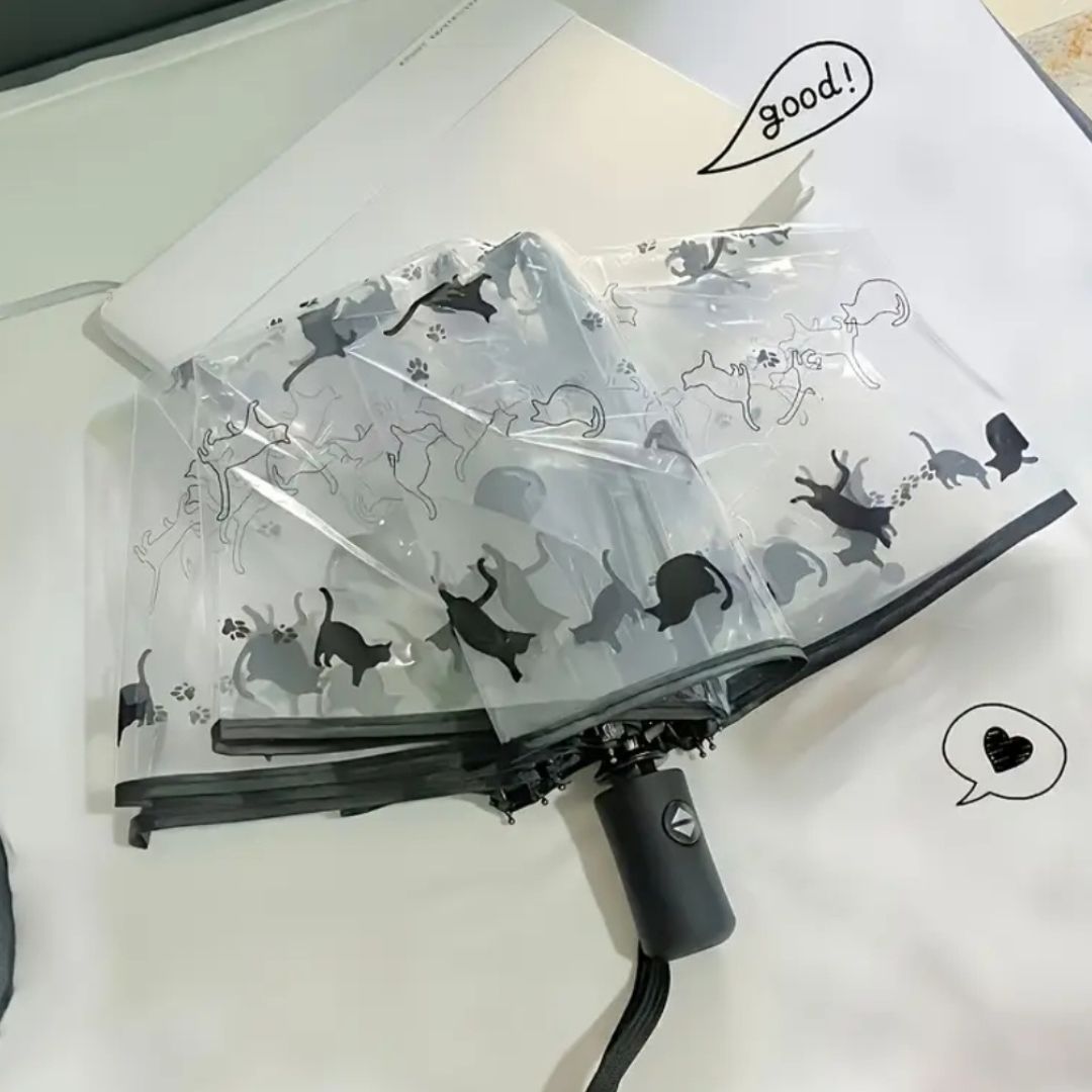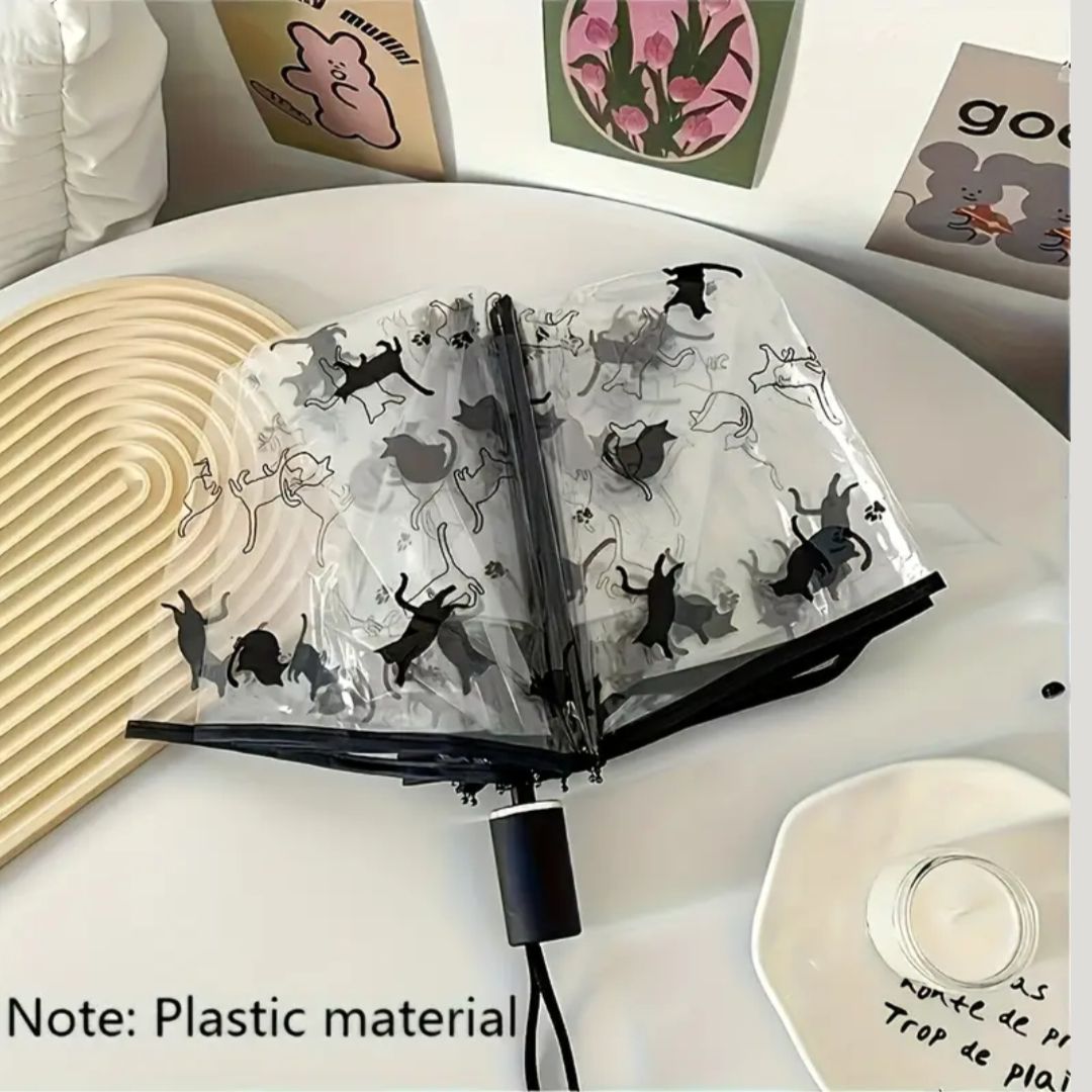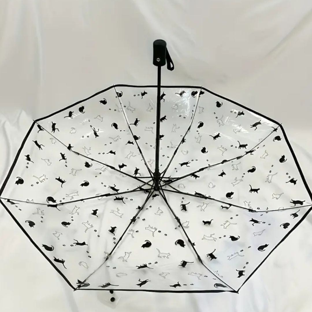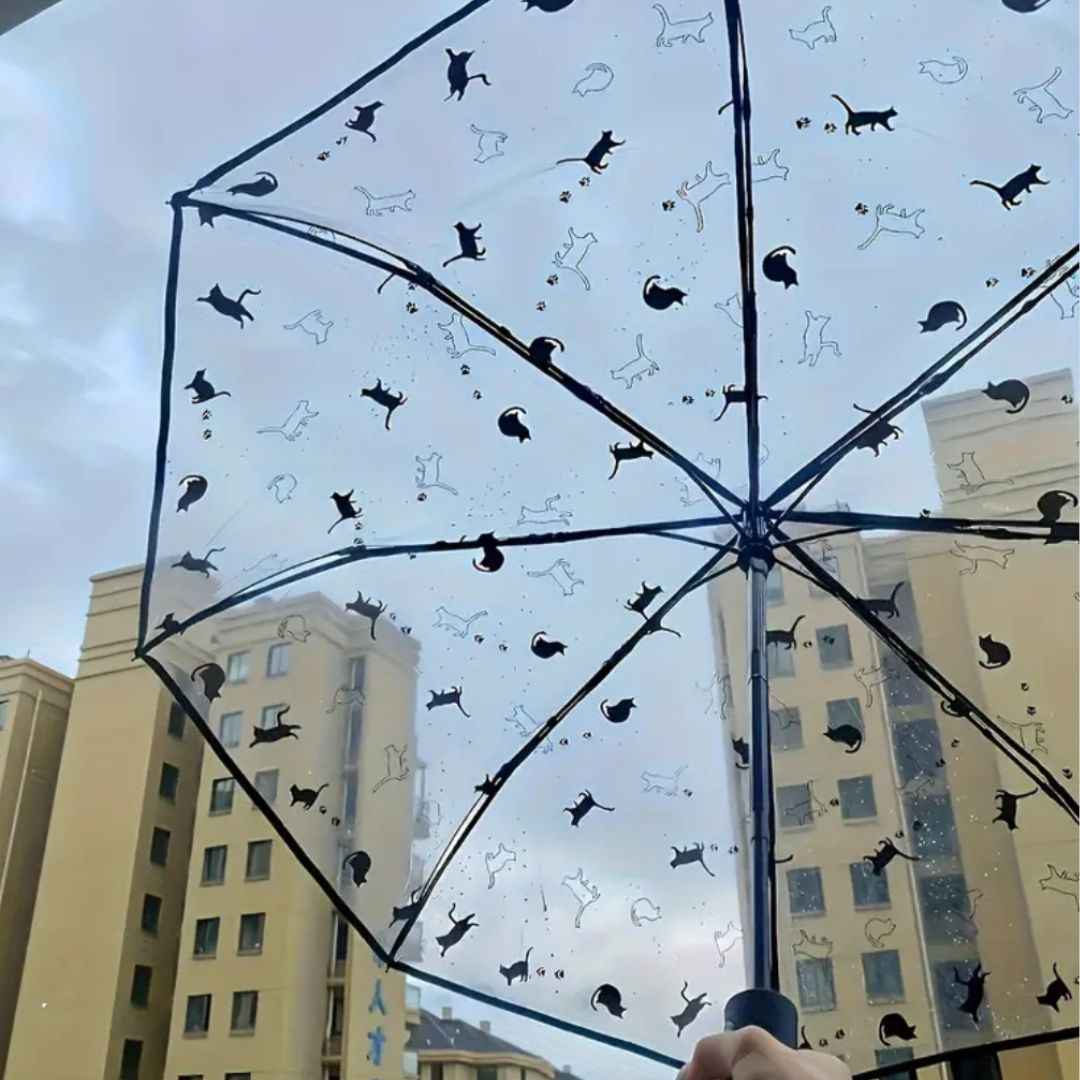 SOMBRILLA CON DISEÑO DE GATO TRANSPARENTE