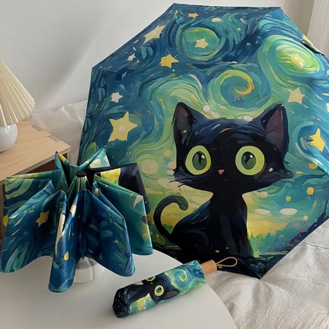 SOMBRILLA CON DISEÑO DE GATO VERDE